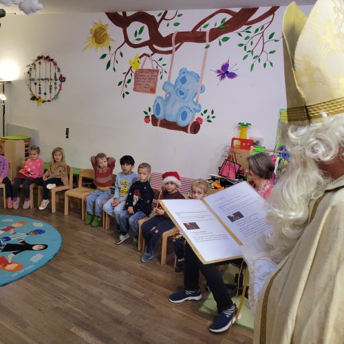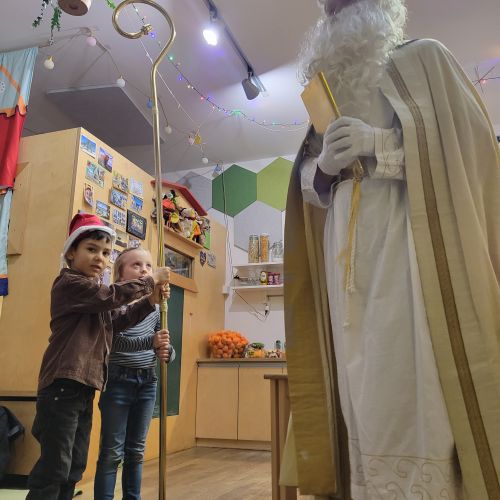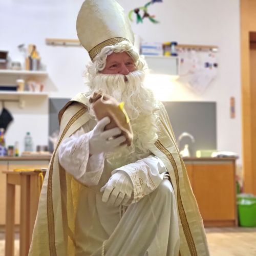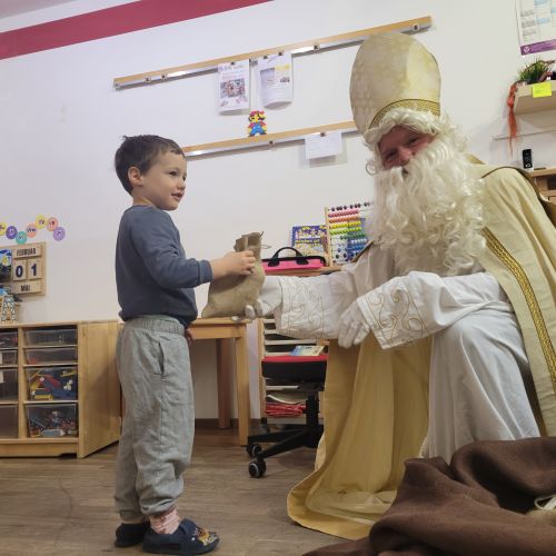 Im Kindergarten Herz Jesu ist der Nikolaus zu Besuch. Wie jedes Jahr in der Adventszeit überrascht der Heilige auch heuer alle vier Gruppen im Haus. Mit im Gepäck hat er nicht nur sein großes Buch, in dem viele Weisheiten und gute Ratschläge stehen, sondern auch – zur Freude der Kinder – einen riesigen Sack gefüllt mit Überraschungen. Der Ablauf ist in jeder Gruppe ähnlich: Die „BaSchuKis“ (Bald Schulkinder) sind eingeladen, den Nikolaus zu empfangen und ihm zu helfen. Alle Kinder der Gruppe sind einbezogen für die Zeit, die der Heilige mit ihnen verbringt.