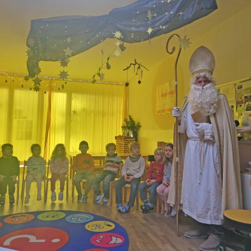 Der Nikolaus zu Besuch im Kindergarten Herz Jesu