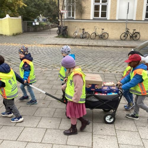 Reis, Nudeln und Kaffee – ein ganzer Bollerwagen voller Lebensmittel ist auch in diesem Jahr bei der Erntedank-Spendensammlung im Kindergarten Herz Jesu zusammengekommen. Die Kinder packten tatkräftig mit an. Sie verstauten alle Spenden in einem Wägelchen und einem Einkaufstrolley. Gemeinsam mit Erzieherin Olga Kitsiou und Kinderhausleitung Angelo Campana ging es anschließend zu Fuß zur Ausgabestelle der Münchner Tafel. Dort war die Freude groß, denn die Zahl der Bedürftigen wachse jährlich, erklärten die Tafel-Mitarbeiter. Die Kinder lernen auf diesem Wege, dass es nicht selbstverständlich ist, dass alle Menschen ausreichend zu Essen haben.