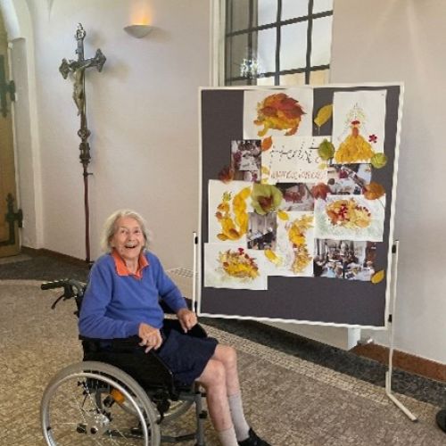 Die fertigen Kunstwerke wurden zusammen mit einigen Fotos des Events im Haus ausgestellt, damit sich jeder an der farbenfrohen Blätterpracht und den schönen Momenten der Begegnung erfreuen kann.