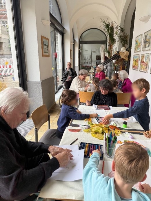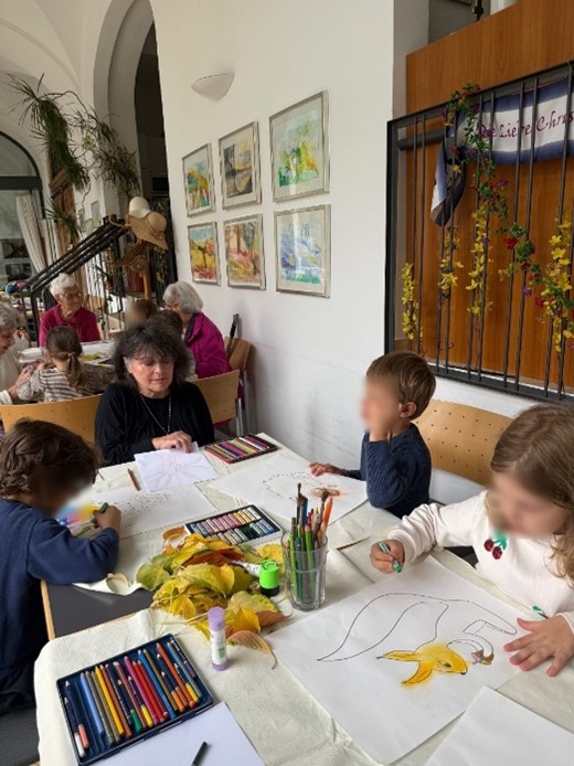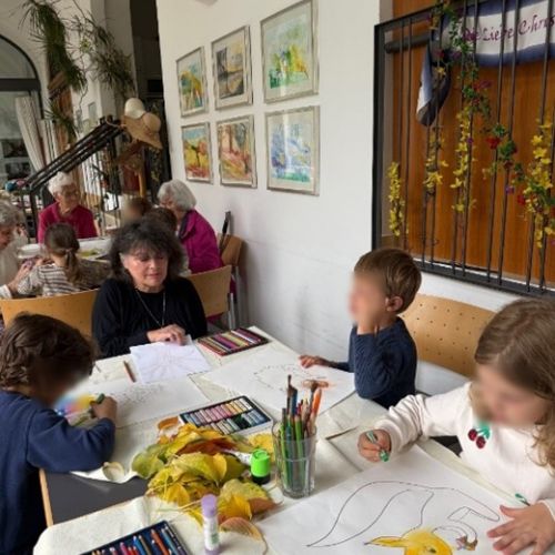 Das Motto war „Bunte Blätterpracht“. Eifrig hatten die Kinder gesammelte Blätter mitgebracht, um sie dann zusammen mit den Senioren in kleine Kunstwerke zu verwandeln. Es wurde geklebt, gemalt und mit viel Liebe zum Detail auf Bildern arrangiert. Es war wunderschön zu sehen, wie Jung und Alt Hand in Hand arbeiteten und dabei ins Gespräch kamen. Alle hatten sehr viel Spaß an dieser kreativen Gemeinschaftsaktion.