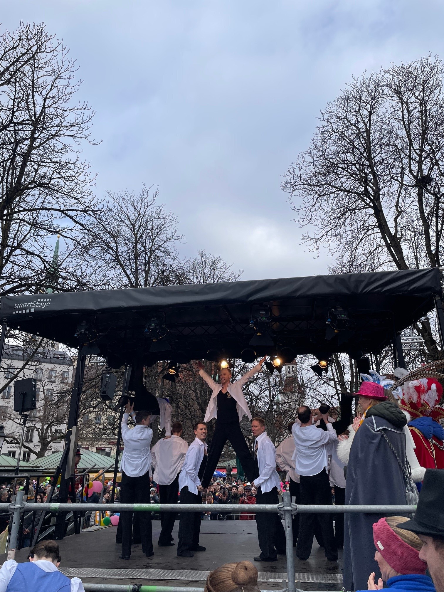Die Stimmung auf dem Markt war schlichtweg bombastisch! Bei frischen Krapfen und vielen weiteren Leckereien genossen wir das bunte Programm in vollen Zügen. Im Mittelpunkt standen die berühmten Marktweiber mit ihren einzigartigen Darstellungen und den fantastischen, farbenprächtigen Kostümen. Es war uns eine besondere Ehre, bei diesem Auftritt dabei zu sein, da viele der Marktweiber in diesem Jahr zum letzten Mal auf der Bühne standen – ein wirklich emotionaler und historischer Moment des Münchner Faschings.