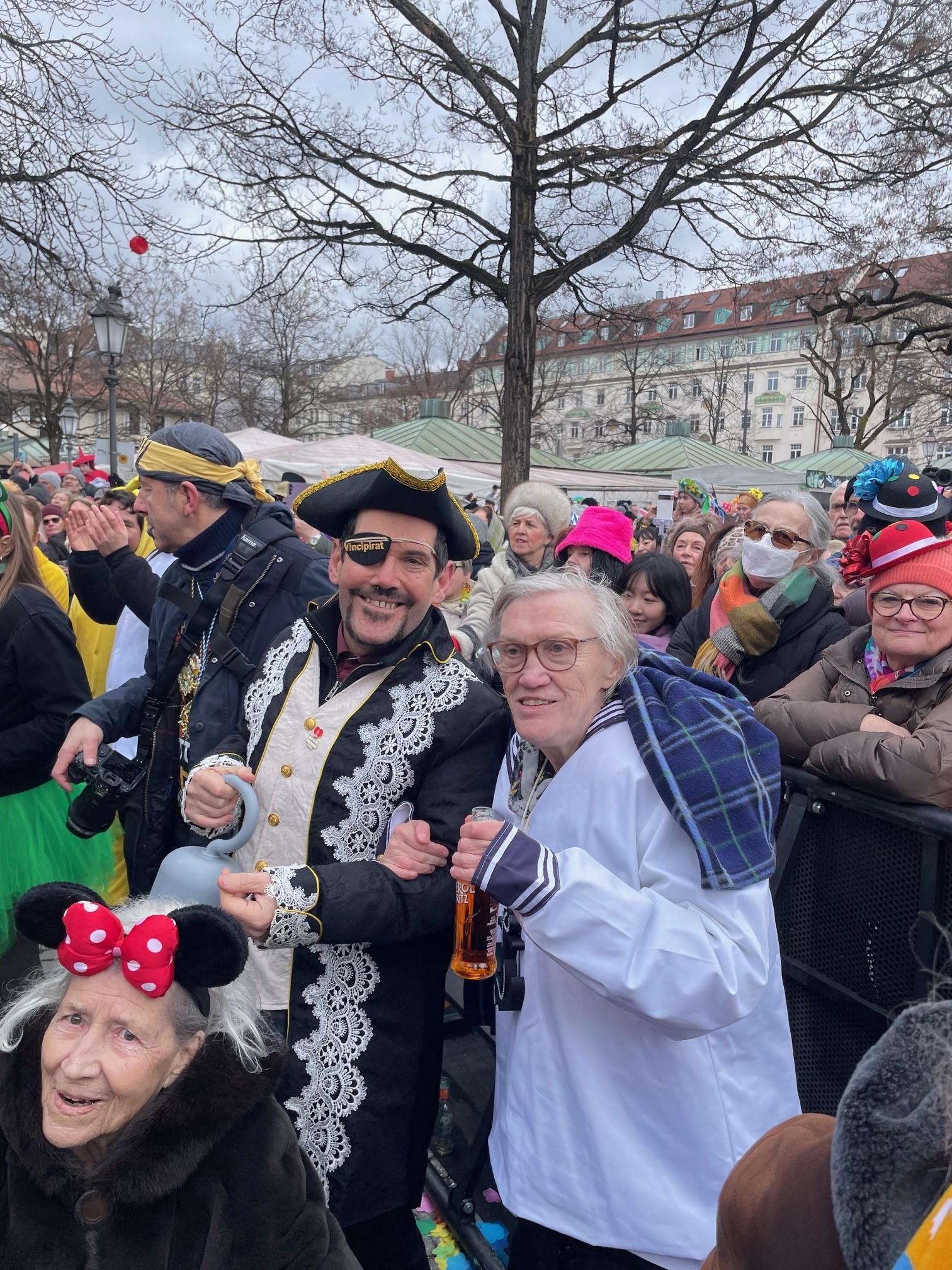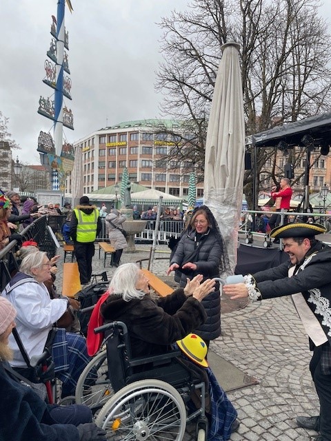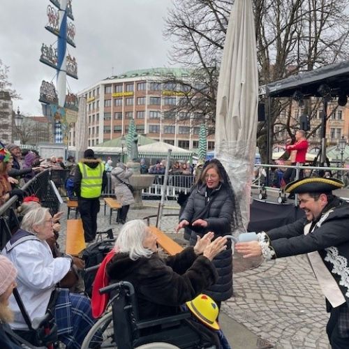 Am Faschingsdienstag erlebten die Bewohnerinnen und Bewohner des Vincentinums einen Vormittag der Extraklasse direkt im Herzen Münchens. Auf Einladung der Landeshauptstadt München durften wir das traditionelle Spektakel am Viktualienmarkt aus nächster Nähe miterleben.
